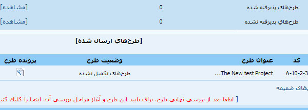 برای آگاهی از آخرین وضعیت طرح پژوهشی خود به صفحه شخصی خود بروید. در این صفحه فهرست طرحهای پژوهشی فرستاده شده از سوی شما و همچنین وضعیت و توضیحات مدیر اجرایی درباره هر طرح پژوهشی دیده میشود.