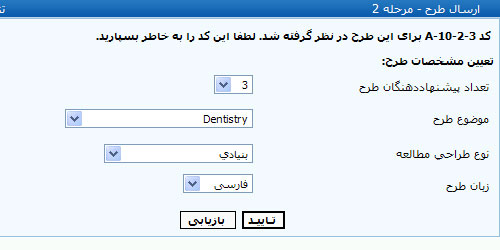 ب) تعیین مشخصات اصلی طرح پژوهشی